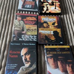 Blandad samling av DVD-filmer innehållande titlar som MASH, OC säsong 1, Sagan om ringen, My name is Earl, Matrix Revolutions, You Got Served, Charlies Änglar, Gudfadern del III, Sex Drive, Marie Antoinette, Deep Impact, Anger Management, Den Svarta Dalian, Varannan vecka, Nowhere Boy, Domino, The Sword and the Sorcerer, Wanted, Weeds, Incassable och Starship Troopers.
