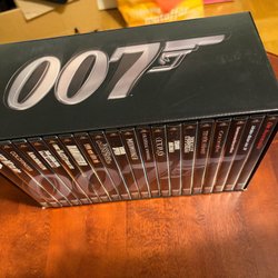 En samling med 22 James Bond-filmer på DVD. Samlingen inkluderar filmer som "Casino Royale" och "Never Say Never Again", samt en box med 20 filmer från "Agent 007 med rätt att döda" till "Die Another Day".