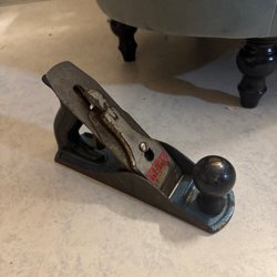 Hyvel från Memo. Verktyget har ett handtag och en knopp i trä.