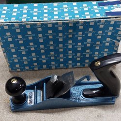 Hyvel från Bahco. Verktyget är utformat för att forma och jämna till träytor. Hyvelstålet behöver slipas om(se bild).