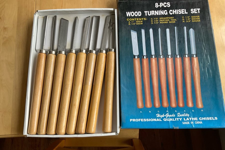 Träsvarvmejselsats med följande innehåll: