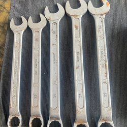 Diverse ringnycklar av märken som Dowidat och SAM. Storlekar och märkningar inkluderar 79, 12, 103 samt ”Made in West-Germany” och ”Chrom Vanadium”.