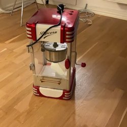 Röd popcornmaskin för hemmabruk. Perfekt för filmkvällen eller festen. Enkel att använda och rengöra.