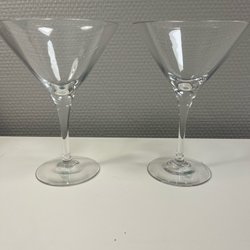 Två glas/starkvinsglas med en dekorativ luftbubbla i foten från Orrefors. I fint skick!