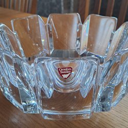 Orrefors, Corona, röd etikett, signerad, kristallskål