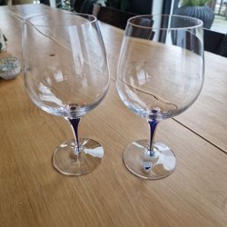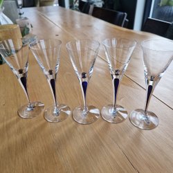 3st Orrefors intermezzo glas med en blå detalj i botten. Ett av glasen har ett märke på kanten se bild, ej vass.