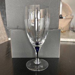 Ett Orrefors snappsglas 6ml med blå detalj i foten. Glaset har en elegant design och är lämpligt för olika drycker. 10st