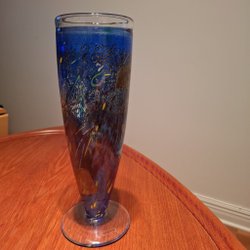 Vacker vas design Jan Johansson. Höjd 15cm, diameter upptill ca 10cm. Formen ger en fantastisk ljusbrytning.