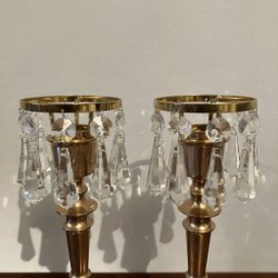Skick: Vasen i gott bruksskick. Ljusstaken saknar kupa samt har spricka i glaset.