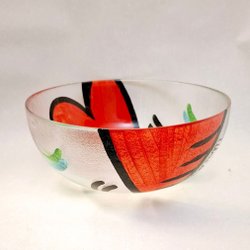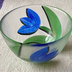 En handmålad skål från Kosta Boda av Ulrica Hydman Vallien. Märkt UHV/GP. Jättefint skick.
