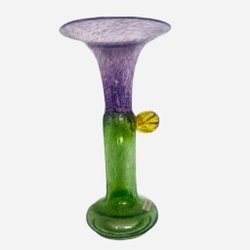 Dekorativ glasvas i fina färger. Vasen har en unik design med en liten blå detalj på sidan.