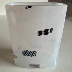 Dekorativ vas i glas med blå och guldfärgad design. Höjden framgår av bilden. Signerad. Artnr 48009