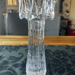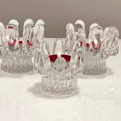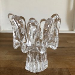 Ljuslykta i klarglas. Lyktan har en form som påminner om en blomma eller stjärna med flera "blad" eller "armar" som strålar ut från mitten. Den är avsedd för ett värmeljus som placeras i mitten. Lyktan är tillverkad av tjockt glas och har en stabil bas. Ca 9 cm hög