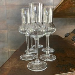 Sju stycken i mycket fint skick . Se alla bilder för mått och skick,jag skriver noggrant ut alla defekter så ni vet vad ni budar på. BETALA INTE INNAN NI ÄR FÄRDIGA om ni vill samfrakta. Är det betalt skickas det. Tänk på att äldre handslipade munblåsta glas kan skilja sig några mm i höjd mm. Ej uthämtade paket skickas inte igen och betalas inte tillbaka så snälla hämta ut ert paket.