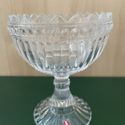 Iittala Marimekko skål i mörkgrön färg. Skålen har en räfflad design och en vågig kant upptill. Den står på en fot med en räfflad bas.