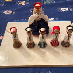 Sex målerås glaskupor till ljus eller använda som glas. Diameter 7.5 centimeter höjd 7 centimeter. Finns nagg på två av dem, den ena knappt synbar. Från 70-talet
