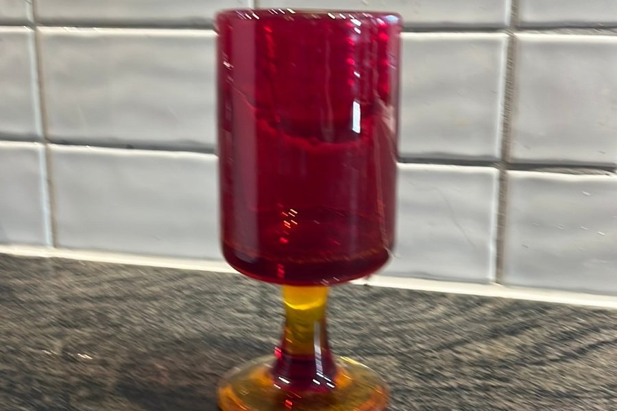 Boda Sweden, Eric Höglund . Osignerad rödorange glas med bubblor. Ca 17 cm hög