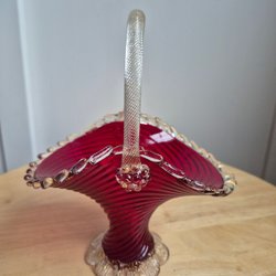 I blått glas med ett tjurhuvud inpräglat i botten.