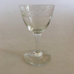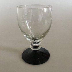 "Jane" Sortfods Rødvinsglas 12 cm H, med drueslibning fra Holmegaard. Produceret første gang i 1942.