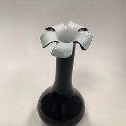 Et par Lysestager i sort glas. Stor: Måler 13,2 cm / 5,19 in. Lille: Måler 11,2 cm / 4,40 in.