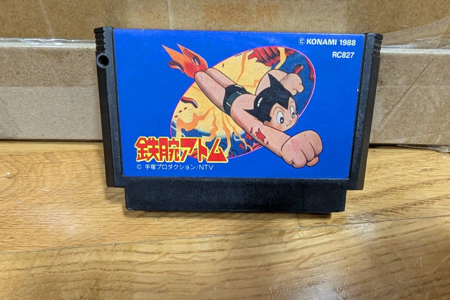 Astro Boy spel till Nintendo NES. RC827 ©?KONAMI 1988 ©?Tezuka Productions / NTV