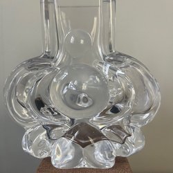 Signerad och stämplad. Inga defekter. 12,5 cm hög, 11 cm djup. 11 cm bred. Kristall, och signerad av Lars Hellsten