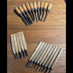 Slitage finns i form av krackelerad lack samt att Levin-märkningen är otydlig på huvudet. Låter mycket bra. Nya strängar sitter på.