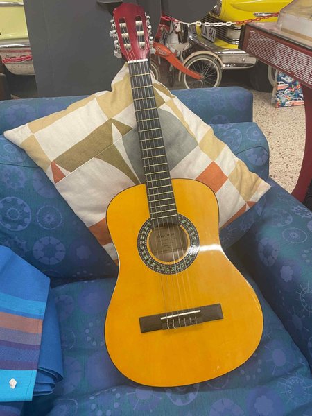 Startone 1/2 nylon (PRYDNAD). Gitarren går att spela på men säljs som projekt eller prydnad. Snyggt med en gitarr på väggen. Eller som första gitarr ät ett barn i och med att den är 1/2 storlek.