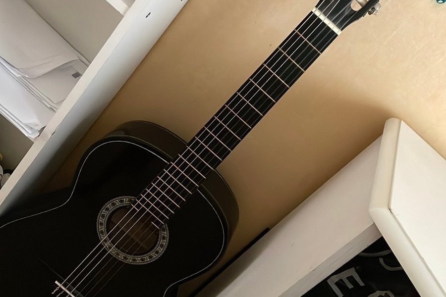Klassisk gitarr, inget särskilt märke. Perfekt för nybörjare eller den som vill ha en prisvärd gitarr att spela på.