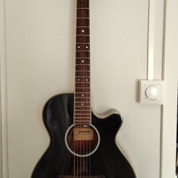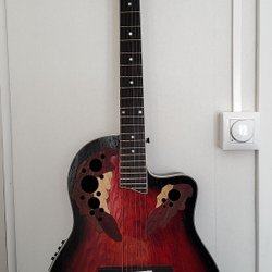 12 String : OBS : det fins en reva i lacken övanför preamp modul samt en reperation som omlackerades och polierad på fram sidan längst ner och ute vid kant band ( ser bilder).