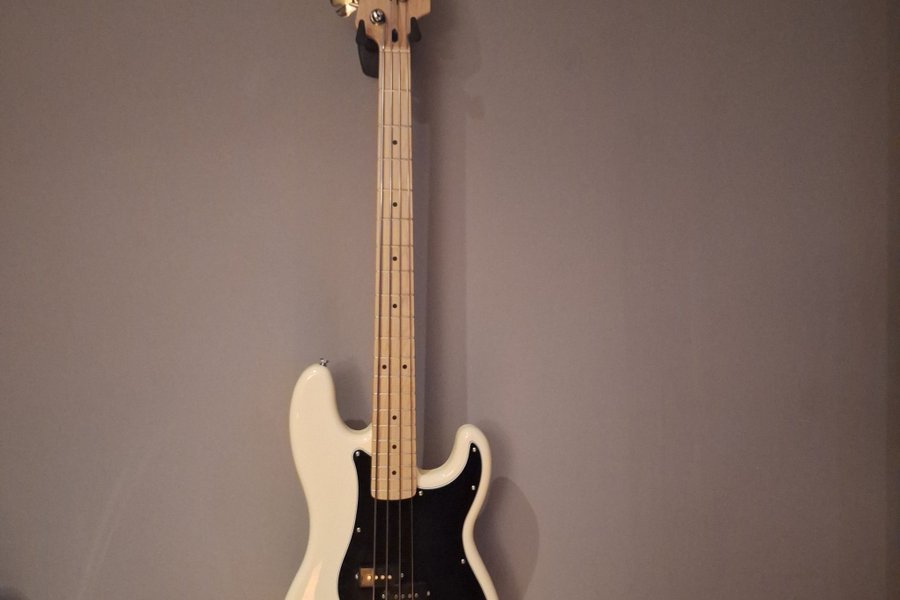 Squier Precision Bass Olympic white med PJ mickar. Basen är inköpt 2025 och i nyskick.