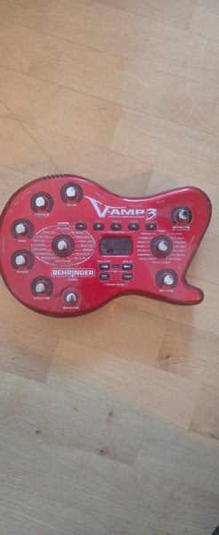 Behringer V-AMP 3 är en virtuell gitarrförstärkare med en mängd olika förstärkarmodeller och effekter. Den har kontroller för Gain, Treble, Mid, Bass, Volume och Master. Förstärkaren erbjuder olika förstärkartyper som Rock, Metal, Clean och Blues, inklusive modeller som Brit Classic, Amber 120, Hi-Brit 100, Rock 59SL, Ultrazonic, Brit Hi Gain, Savage Beast, Numetal Gain, Tube Preamp, Classic Clean, Clean V-Amp, Calif Clean, Black Twin, American, Deluxe Blues, Brit Blues och Crunch. Effekterna inkluderar Tremolo, Flanger, Chorus, Phaser, Auto Wah, Compressor, Chorus+Comp, Echo, Delay, Ping Pong, PH+Delay, FL+Delay 1, FL+Delay 2, CH+Delay 1 och Chorus+Delay 2. Enheten har även funktioner för Bank Down, Bank Up, Edit, Tap, Tuner, 2nd Par, Preamp Bypass och Exit. Anslutningar finns för MIDI In/Out/Thru, AC In, Line Out (L/R), Aux In, Input och Phones.