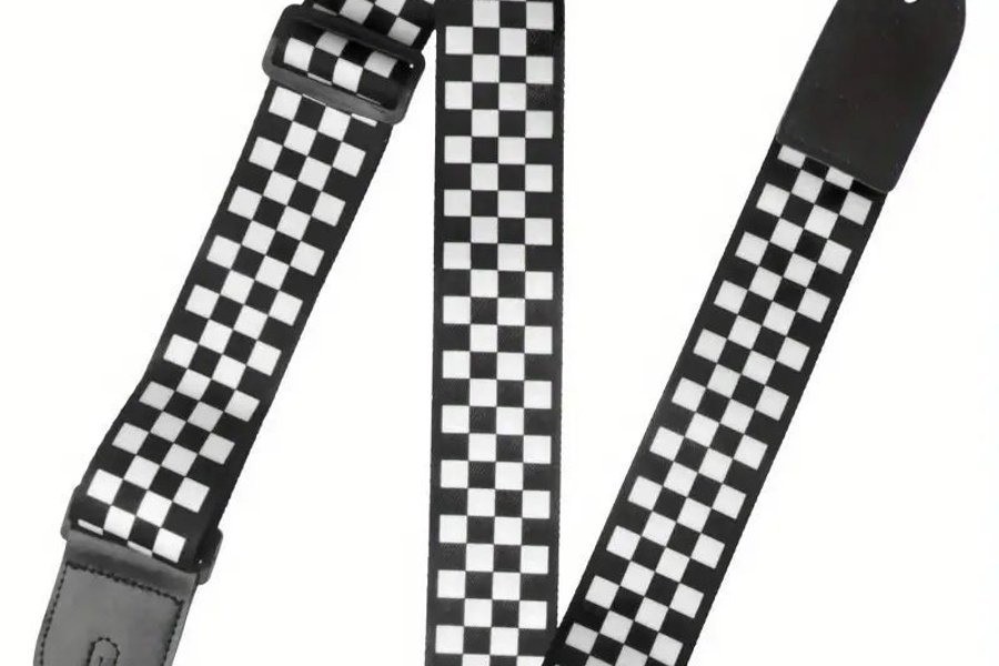 Svart och vitt schackmönstrat gitarrband. Justerbar längd för optimal komfort och passform. Perfekt för gitarrister som vill addera en stilren detalj till sin utrustning.
