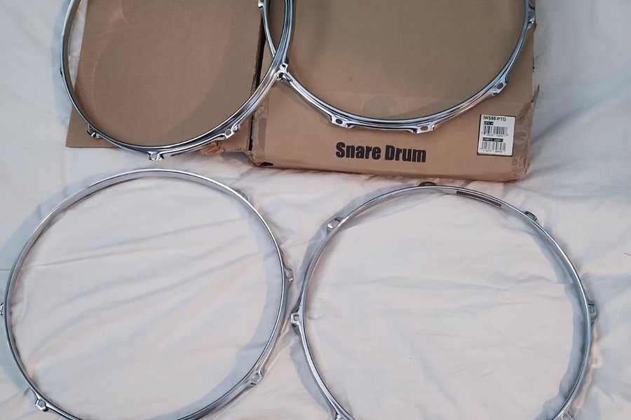 Säljer fyra sargar till två virveltrummor. Perfekt för den som bygger trummor eller behöver reservdelar. 8 och 10 hål för stämskruvar.