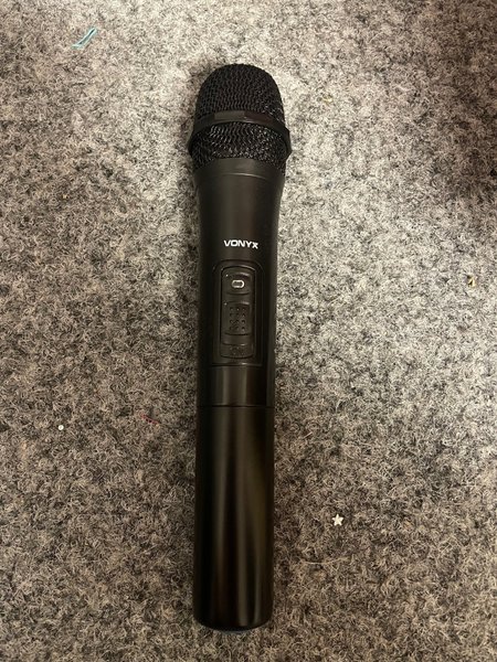 Vonyx mikrofon i svart färg. Modellen har en på/av-knapp och går på batteri. Till vonyx högtalare