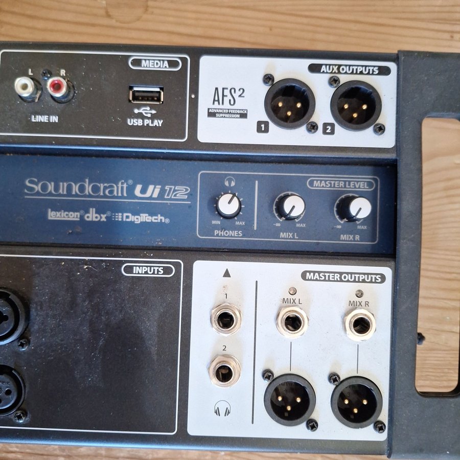 Soundcraft Ui12 är en digital mixer med 12 ingångar. Den har inbyggt WiFi, USB-uppspelning och AFS2 Advanced Feedback Suppression. Den har även aux-utgångar och masterutgångar.