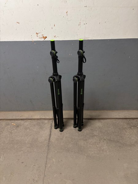 Två Gravity högtalarstativ.