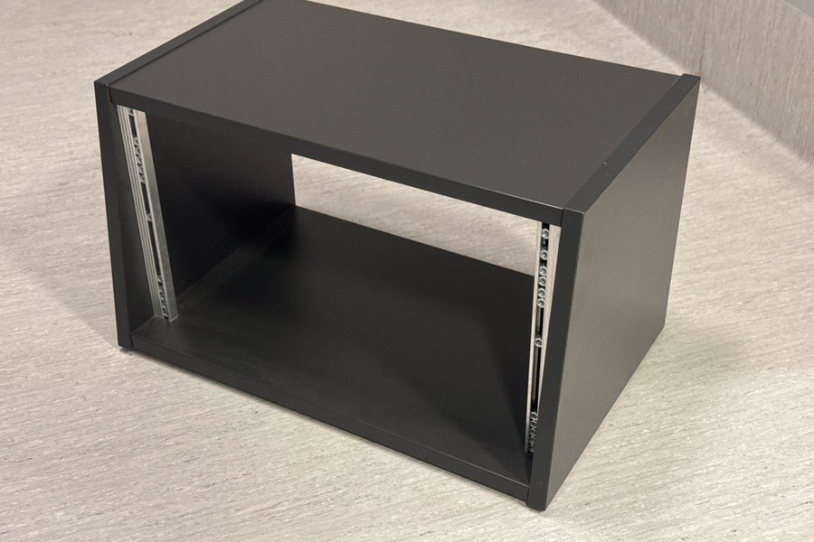 Rackmöbel för studio-utrustning. Passar för 19-tums rackmonterbar utrustning. Enheten är 6U hög och 29cm djup. Bra skick