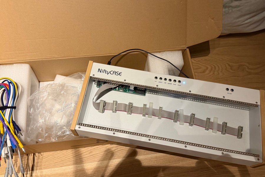 Detta var från början en NiftyBUNDLE. Men jag har inte kvar moduler eller kablar. Däremot låg det 19 patchkablar i lådan i olika färger och längd som får ingå.