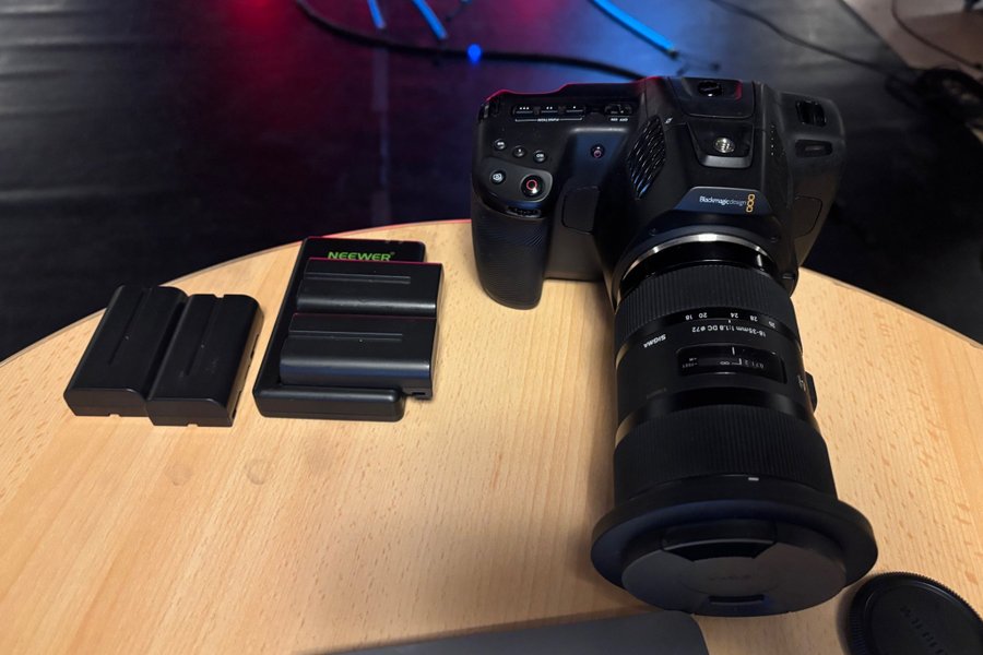 Säljer en blackmagic med ett Sigma 18-35mm objektiv. Extra batterier från Neewer ingår + 2 st orginal blackmagic batterier.