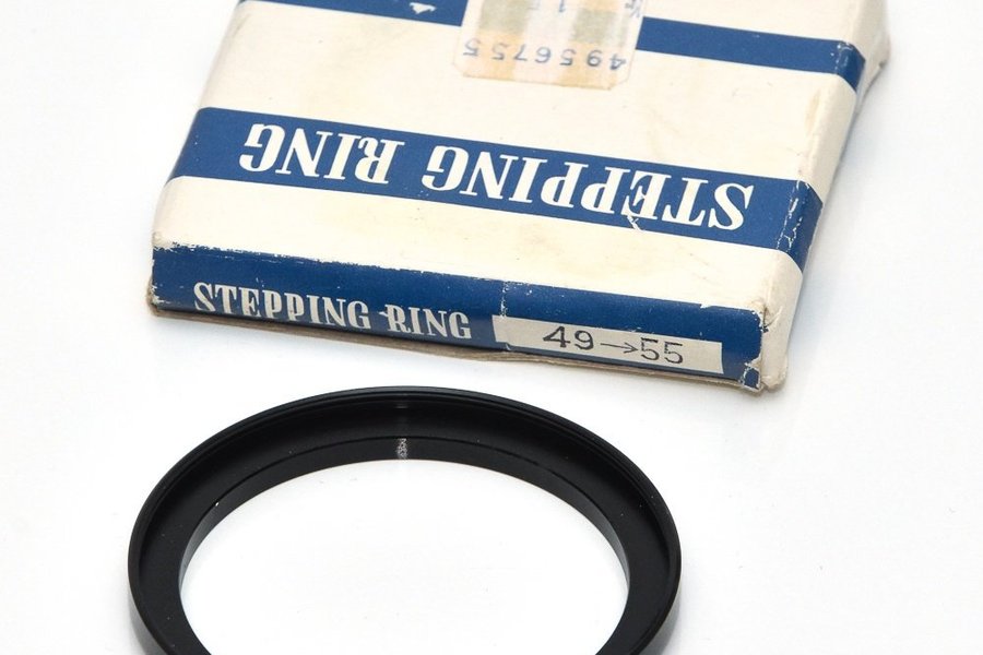Skruva på 55mm filter/tillbehör på ett objektiv med 49mm filtergänga med denna step ring.
