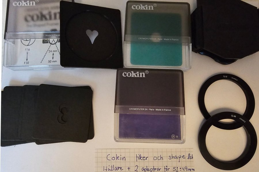 Cokin filter och shape set innehållande filterhållare, shape-filter samt två adapterringar för 52 och 49mm.