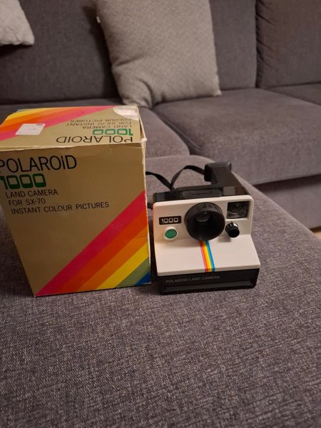 Polaroid 1000 Land Camera för SX-70 Instant Colour Pictures med originalkartong.