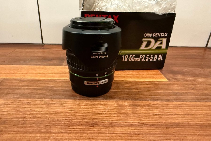 Säljer ett Pentax SMC DA 18–55mm f/3.5–5.6 AL, ett lätt och smidigt allroundobjektiv som passar perfekt för vardagsfoto, resor och landskap.Info