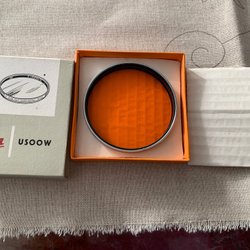 Objektiv för kamera. Objektivet är förpackat i en plastpåse och bubbelplast. På förpackningen finns en etikett med texten "Objektiv" och "Objektive, gefaßt" samt artikelnummer "F 60 66 – 001 043" och "520 504 – 80 17".