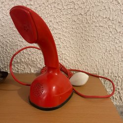 En röd LM Ericsson Cobra telefon. Tillverkad i Sverige. Skick enl bilder.