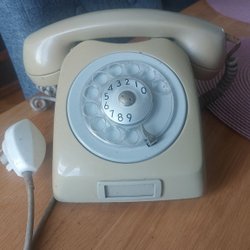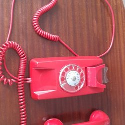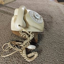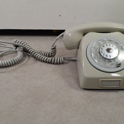 En klassisk retro telefon. Perfekt för den som älskar vintage inredning eller vill lägga till en unik detalj i hemmet. Telefonen har en tidlös design med en roterande nummerskiva.