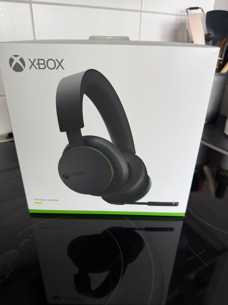 Trådlöst headset från Xbox. Headsetet är svart med gröna detaljer och har en mikrofon.