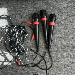 Tre olika kablar för Xbox 360. En komponentkabel med RCA-kontakter för ljud och bild, en kompositkabel med RCA-kontakter för ljud och bild, samt en VGA-kabel för anslutning till skärm.