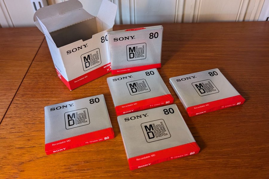 Säljer ett paket med 5 stycken Sony MiniDisc MDW80T. Perfekt för dig som vill spela in musik eller annat ljud.
